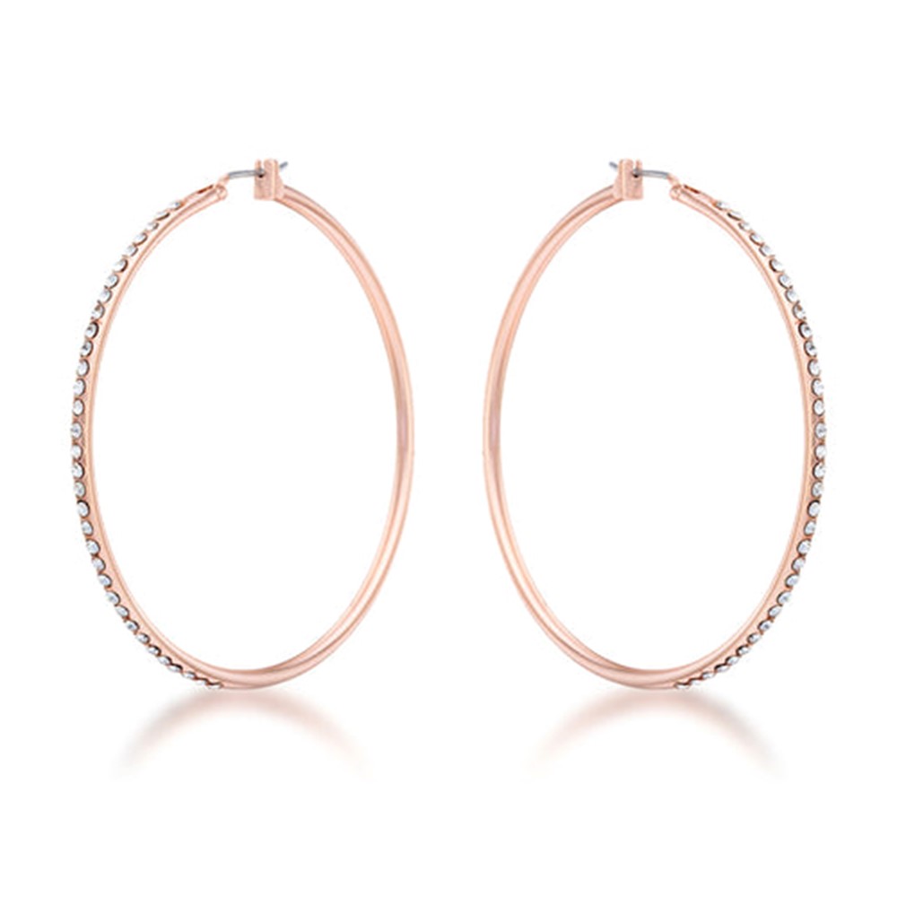 Show off effortless elegance with these rose-gold crystal hoop earrings. The slim, shimmering design adds just the right amount of sparkle—perfect for elevating everyday looks or adding glam to a night out.