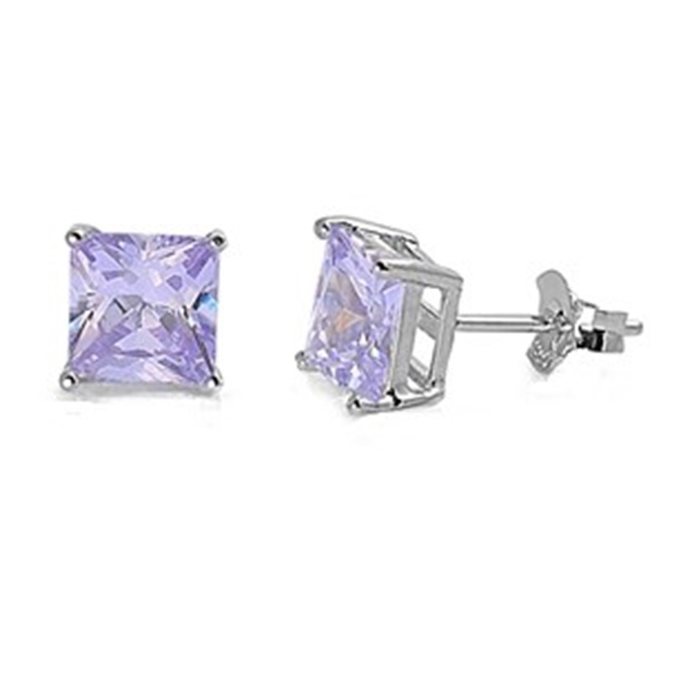 Add a touch of soft elegance with these stunning lavender princess-cut stud earrings. The radiant square gemstone sparkles beautifully in its sleek silver-tone prong setting, offering a modern, feminine look perfect for everyday wear or special occasions.