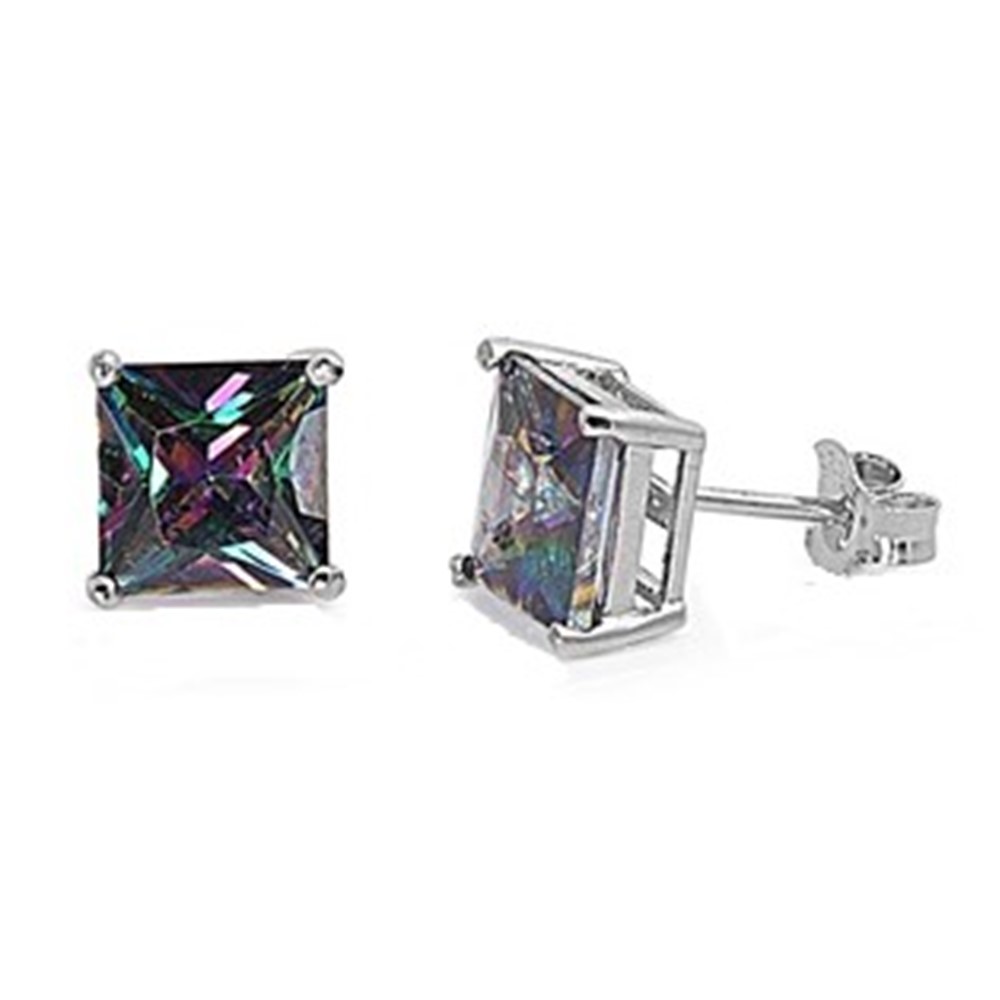 Make your style unforgettable with these stunning mystic quartz–inspired princess-cut stud earrings. Their iridescent rainbow sparkle and sleek silver-tone setting create a bold yet elegant look—perfect for adding instant glamour to any outfit.
