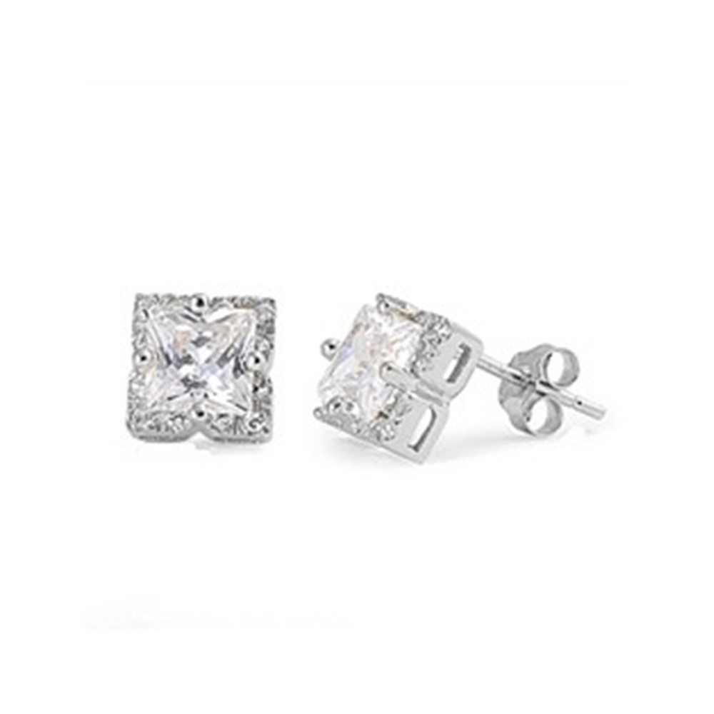 Elevate your everyday look with these brilliant princess-cut stud earrings. Designed with a shimmering halo and a sleek silver-tone setting, they deliver maximum sparkle in a timeless, modern style—perfect for both casual and elegant outfits.