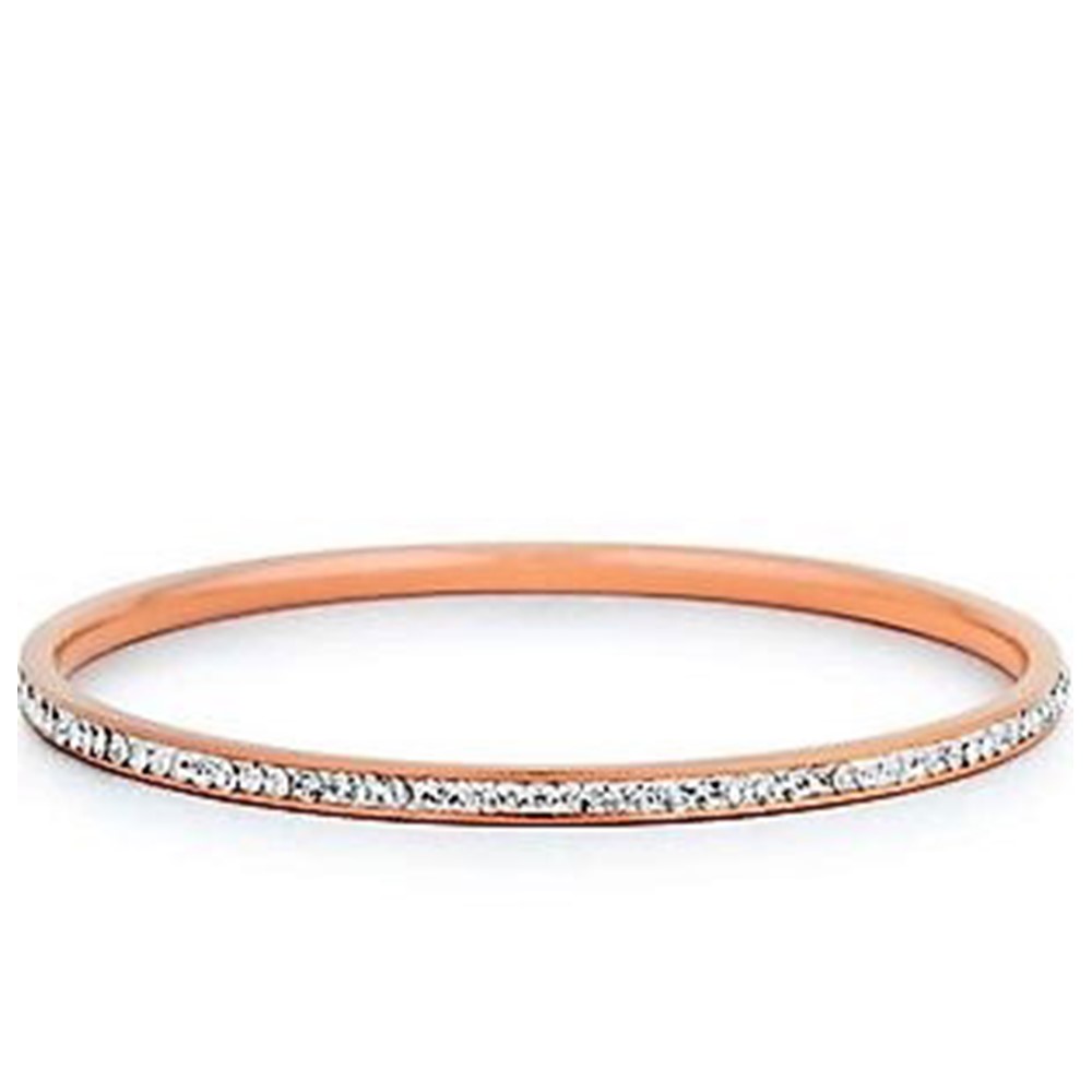 Add a touch of modern elegance with this slim rose gold crystal bangle. Its sleek design and sparkling row of stones create the perfect everyday accessory—beautiful worn solo or stacked for extra glamour.