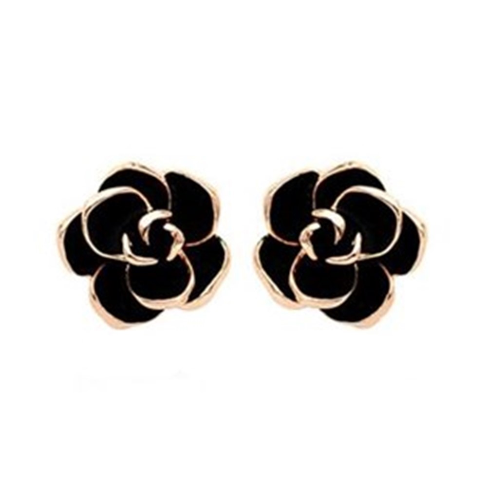 Elevate your style with these chic black rose stud earrings, outlined in luxe gold-tone detailing. Bold, elegant, and effortlessly modern—perfect for everyday wear or a polished evening look.