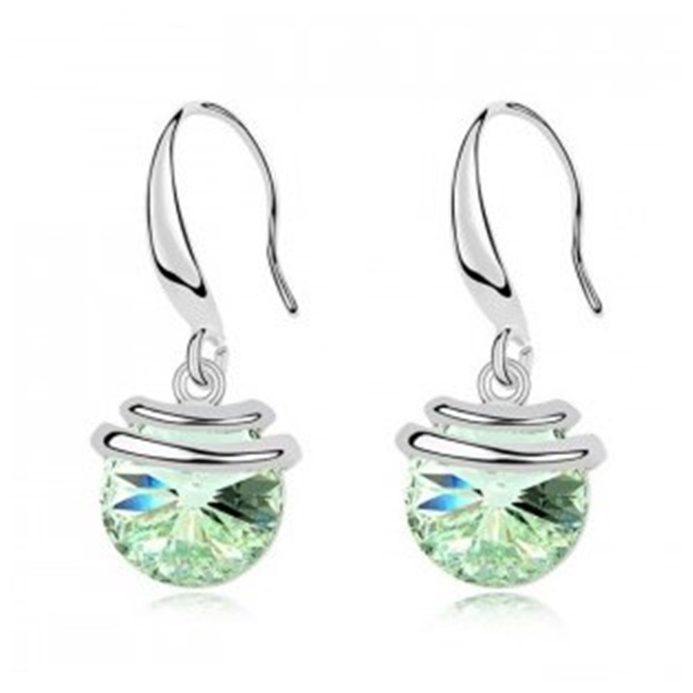 Add a touch of modern sparkle with these mint-green crystal drop earrings. Featuring a shimmering round stone and sleek silver-tone curves, they deliver lightweight elegance perfect for both everyday wear and special occasions.