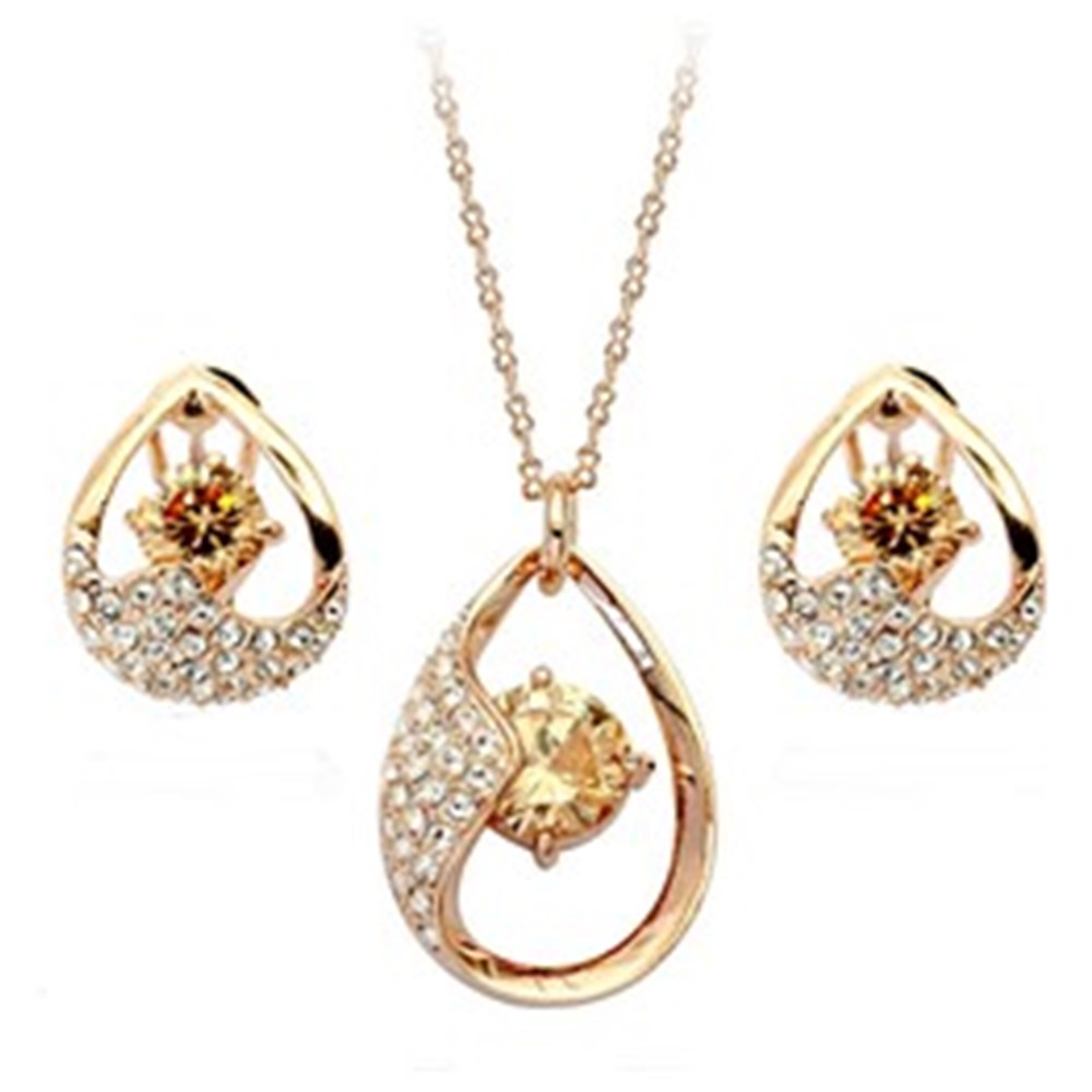 Turn heads with this elegant gold-tone jewelry set featuring a dazzling teardrop pendant and matching earrings. Accented with brilliant crystals and a radiant center stone, this set delivers timeless sparkle perfect for any occasion.