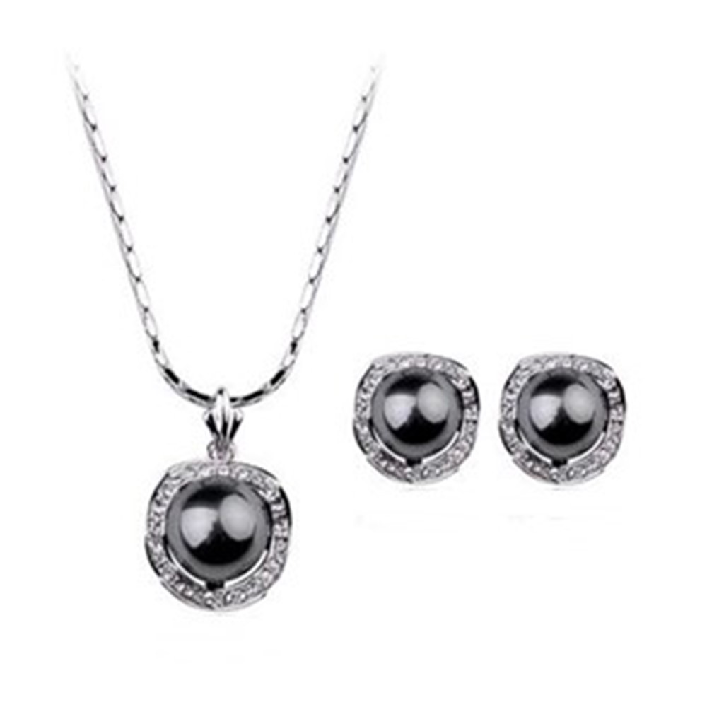 Elevate your look with this elegant black pearl jewelry set, featuring a shimmering pendant and matching stud earrings framed in brilliant crystal accents. Chic, modern, and timeless—perfect for both everyday sophistication and special occasions.