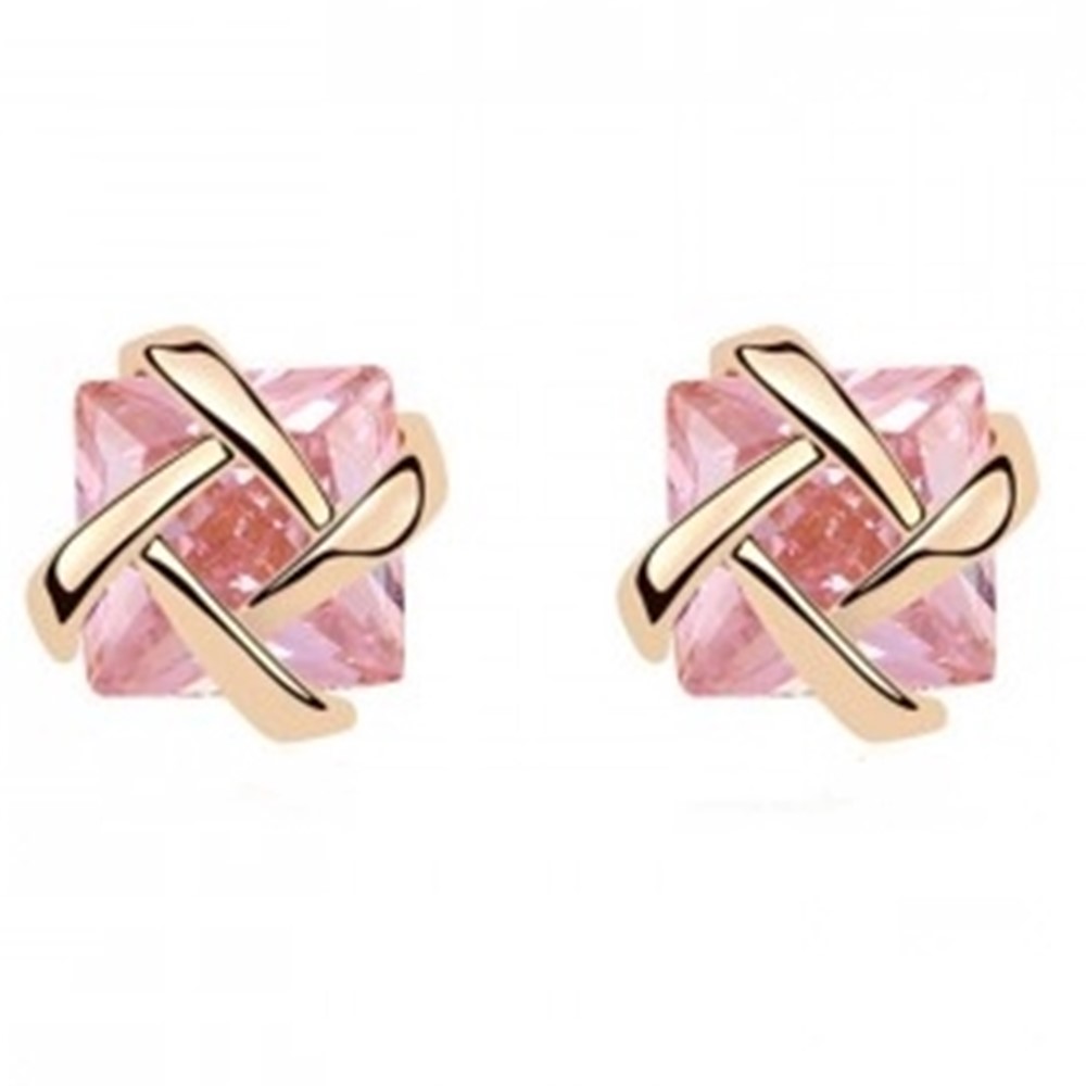 Brighten your style with these elegant pink crystal knot stud earrings. Featuring a princess-cut pink stone wrapped in a polished gold-tone knot design, these studs deliver a chic, feminine sparkle—perfect for everyday wear or a polished, modern look.