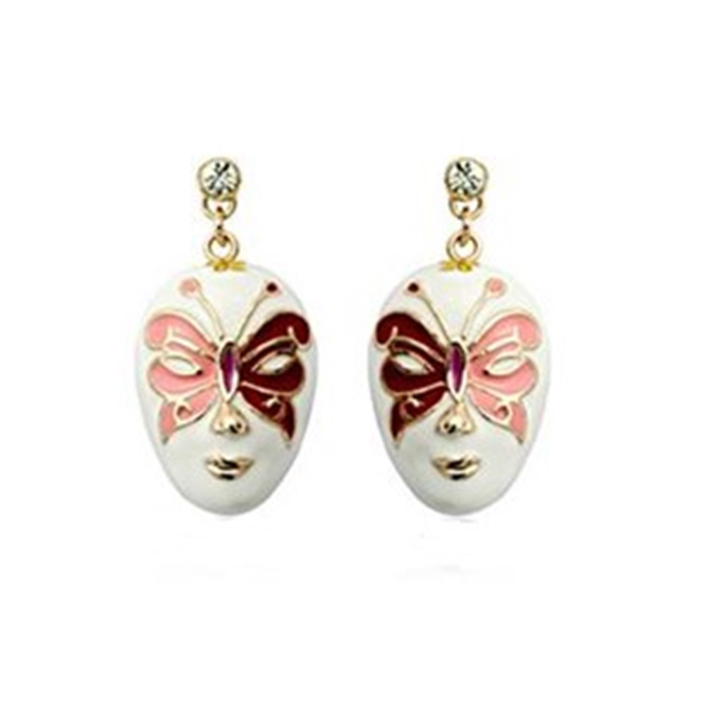 Turn heads with these artistic butterfly-mask drop earrings, blending bold enamel detailing, soft pink hues, and a touch of sparkle. A unique statement piece for women who love standout, fashion-forward jewelry.