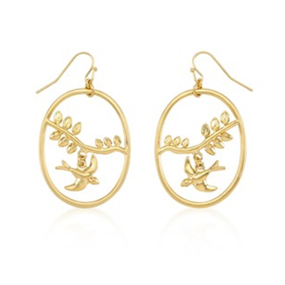 Bring a touch of charm and elegance to your look with these gold bird-and-branch dangle earrings. Their delicate openwork design and nature-inspired details make them the perfect statement piece for effortless, everyday beauty.