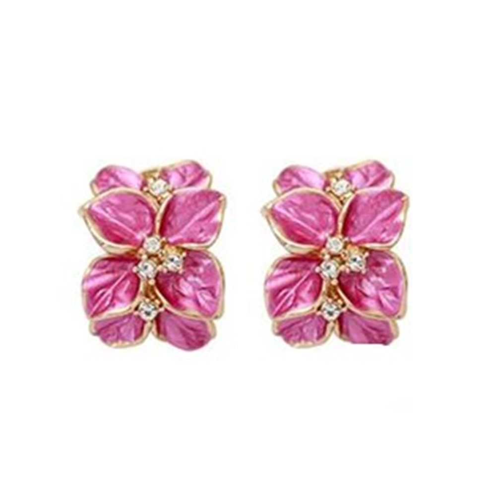 Bloom with style in these vibrant pink floral stud earrings, featuring shimmering petals and sparkling crystal centers. Bold, feminine, and eye-catching—perfect for adding a fresh pop of color to any look.
