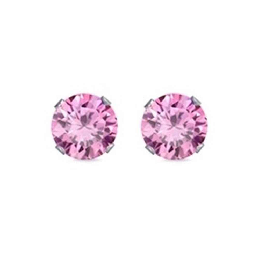 Pink Round CZ Stud Earrings