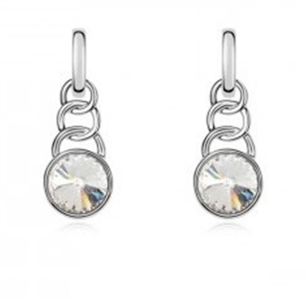 Material: White gold plated link earrings with crystal accents.