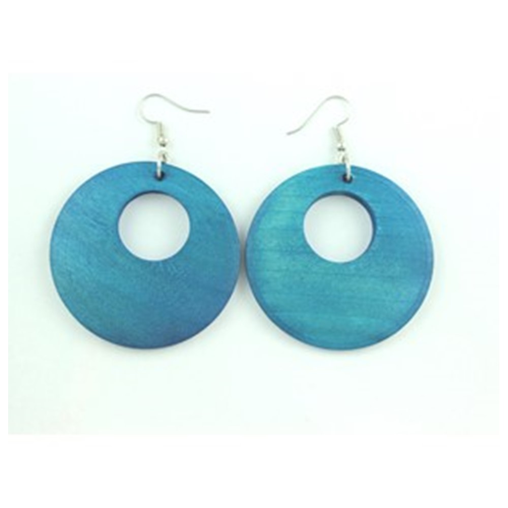 Brighten your look with these bold blue wooden circle earrings—lightweight, modern, and effortlessly stylish. Perfect for adding a vibrant pop of color to any outfit.